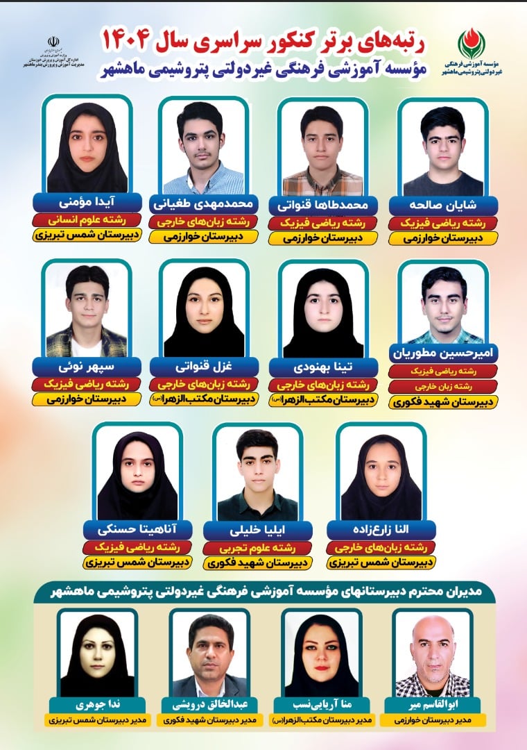 رتبه های برتر کنکور سال تحصیلی ۱۴۰۴ درخشش دانشآموزان مؤسسه آموزشی فرهنگی غیر...